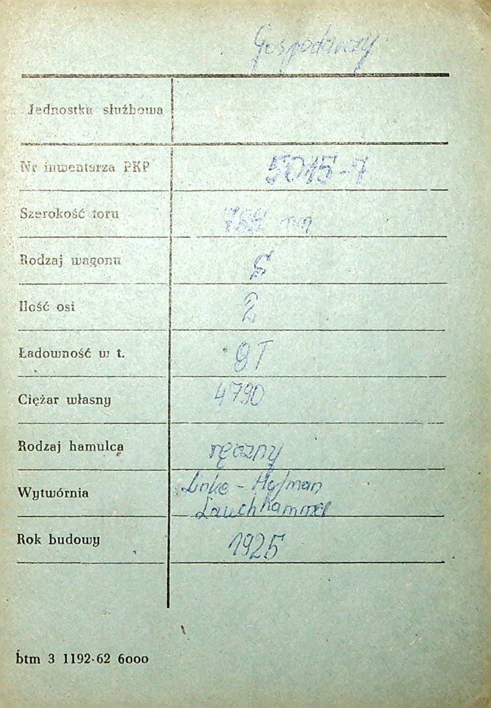 Karta wagonu Górnośląskich Kolei Wąskotorowych |