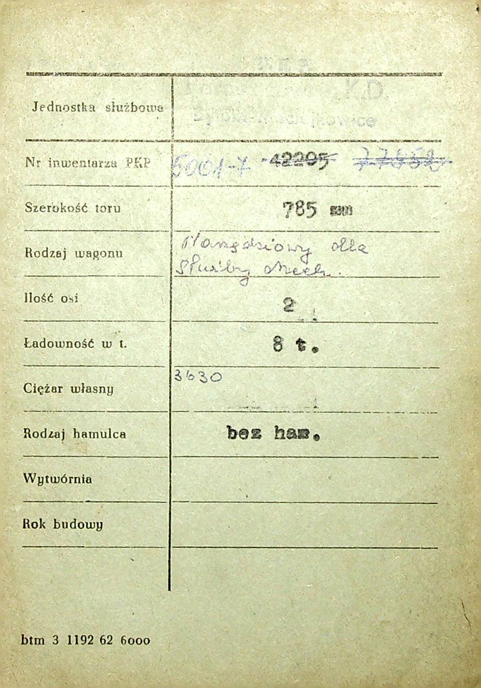 Karta wagonu Górnośląskich Kolei Wąskotorowych |