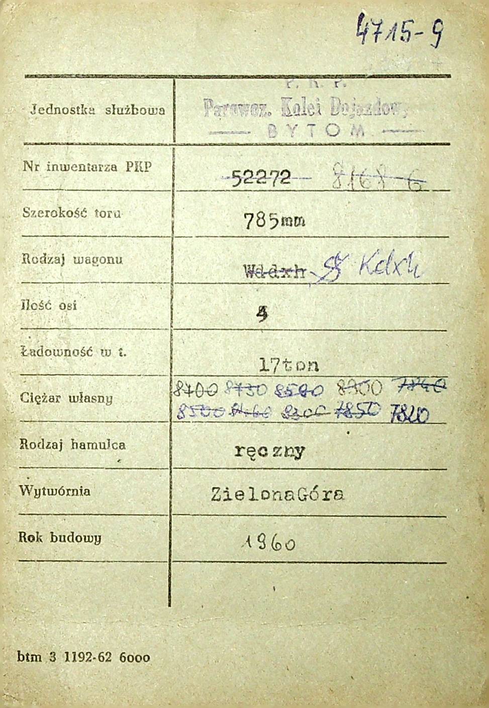 Karta wagonu Górnośląskich Kolei Wąskotorowych |