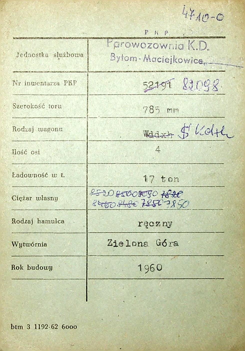 Karta wagonu Górnośląskich Kolei Wąskotorowych |
