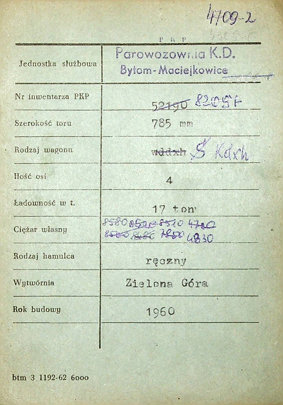 Karta wagonu Górnośląskich Kolei Wąskotorowych |