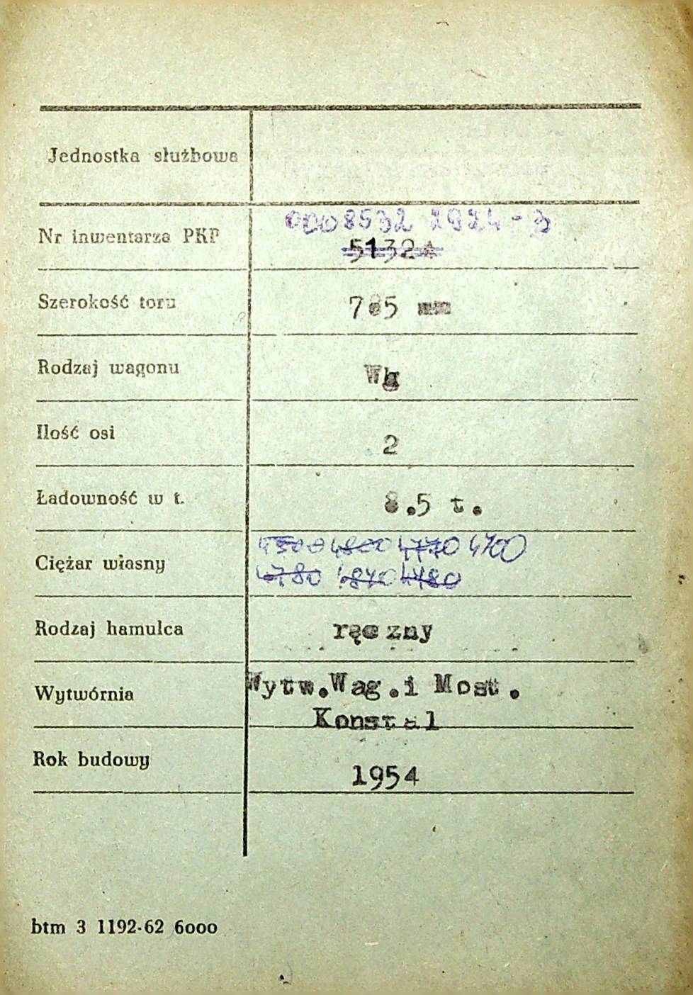Karta wagonu Górnośląskich Kolei Wąskotorowych |