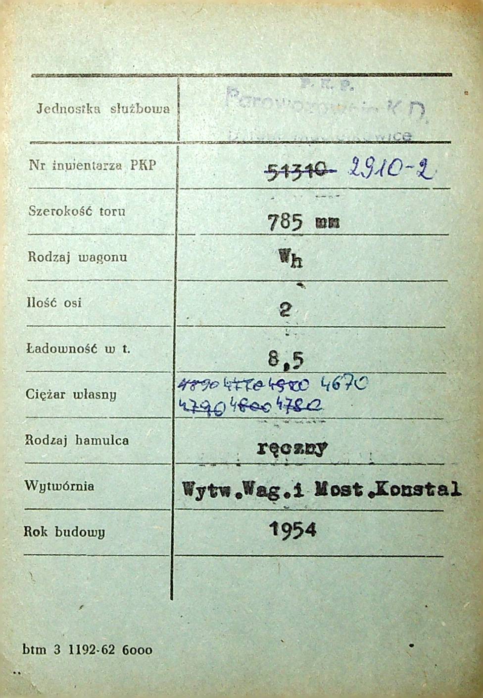 Karta wagonu Górnośląskich Kolei Wąskotorowych |