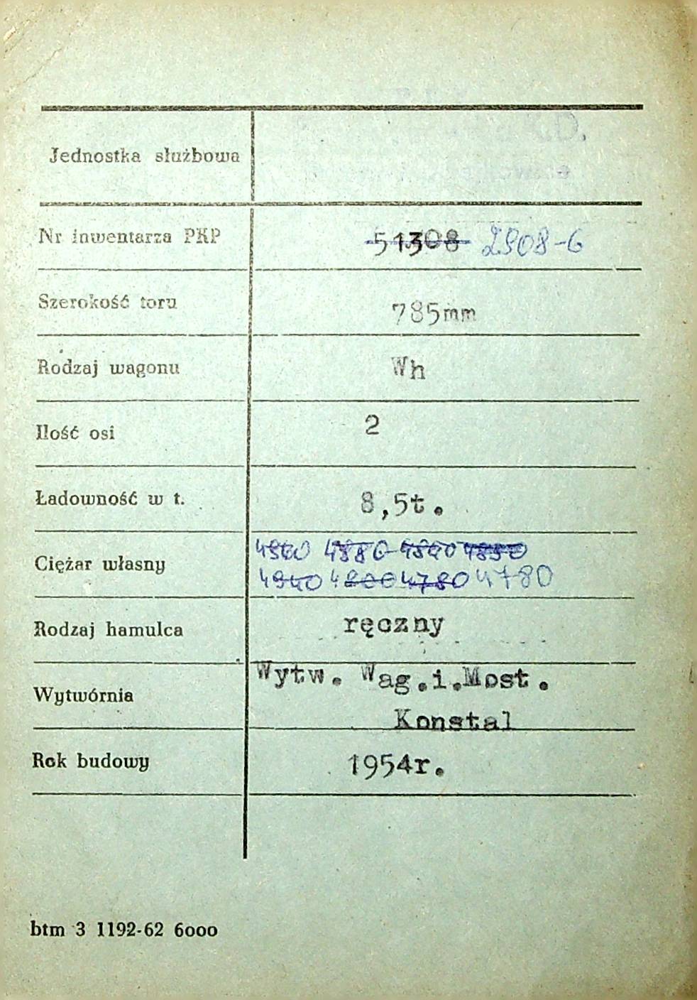 Karta wagonu Górnośląskich Kolei Wąskotorowych |
