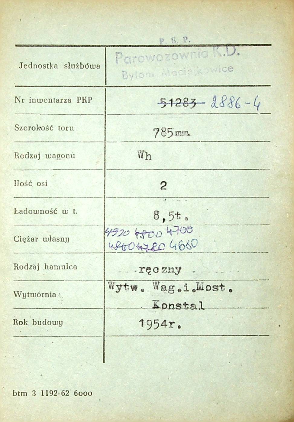 Karta wagonu Górnośląskich Kolei Wąskotorowych |