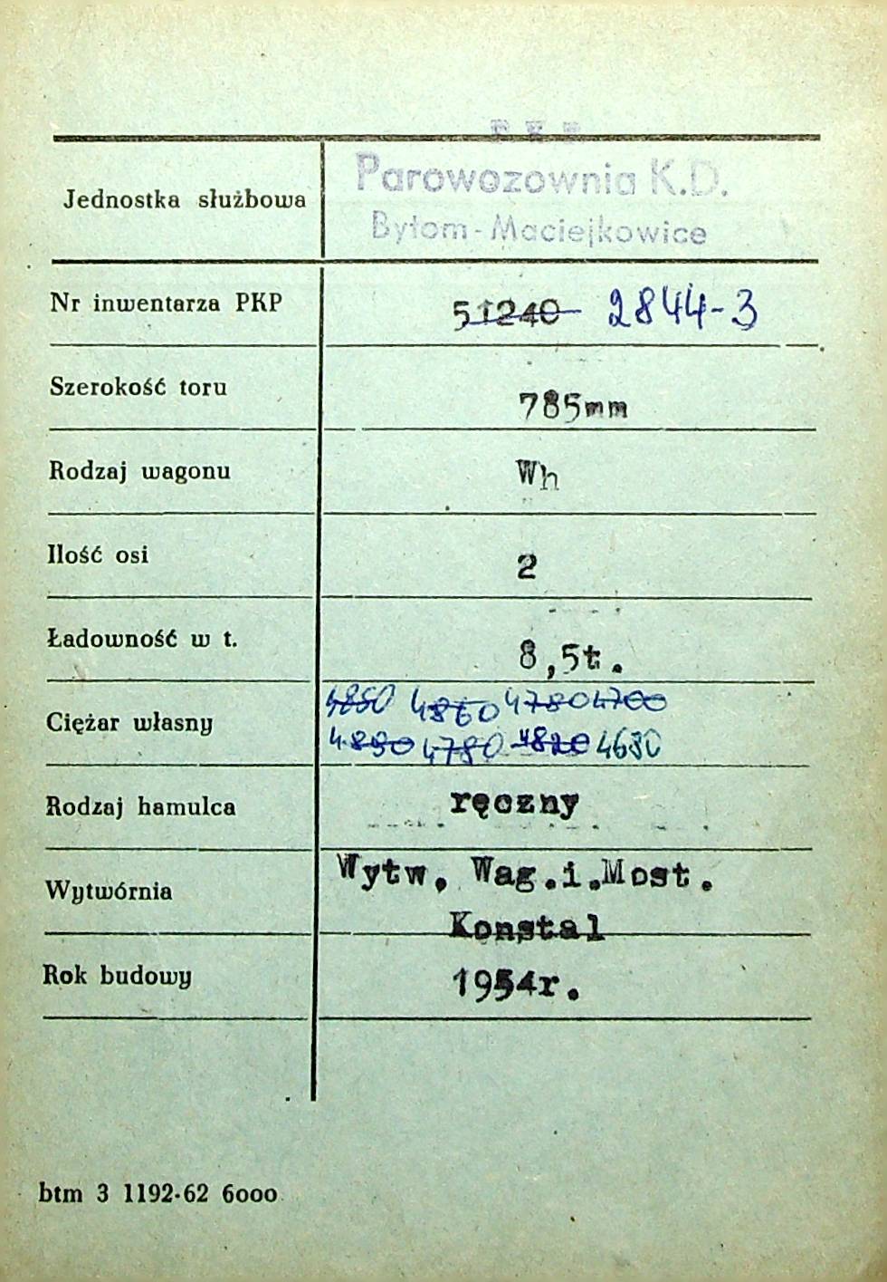 Karta wagonu Górnośląskich Kolei Wąskotorowych |