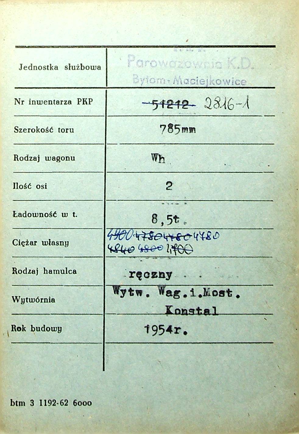 Karta wagonu Górnośląskich Kolei Wąskotorowych |