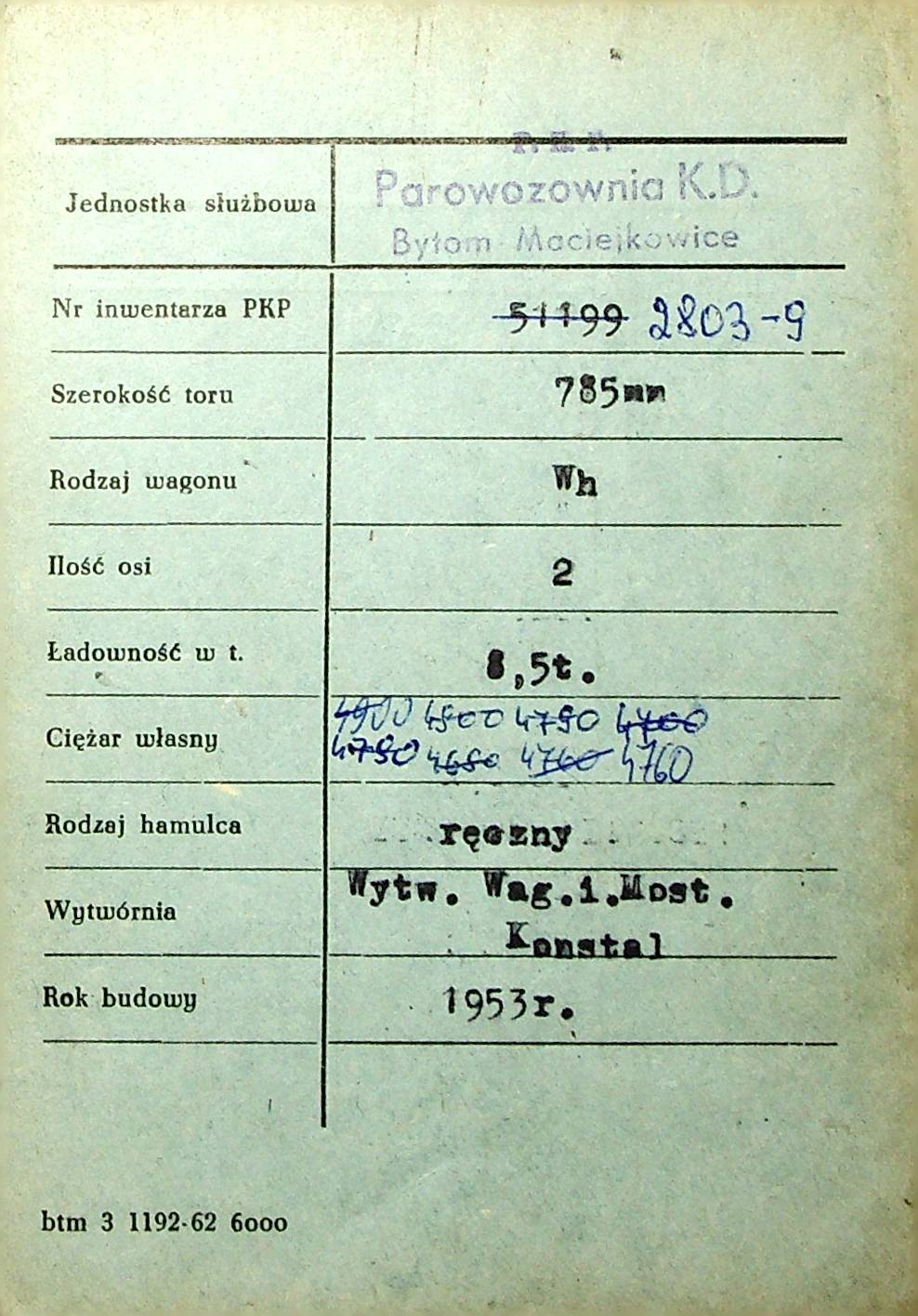 Karta wagonu Górnośląskich Kolei Wąskotorowych |