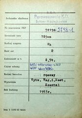 Karta wagonu Górnośląskich Kolei Wąskotorowych |