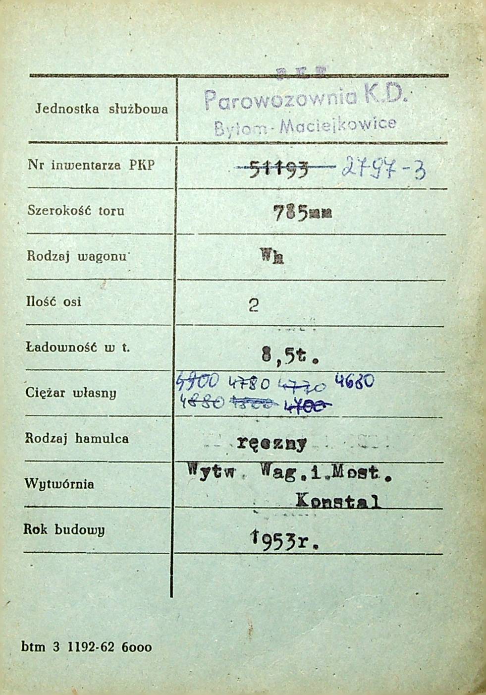 Karta wagonu Górnośląskich Kolei Wąskotorowych |
