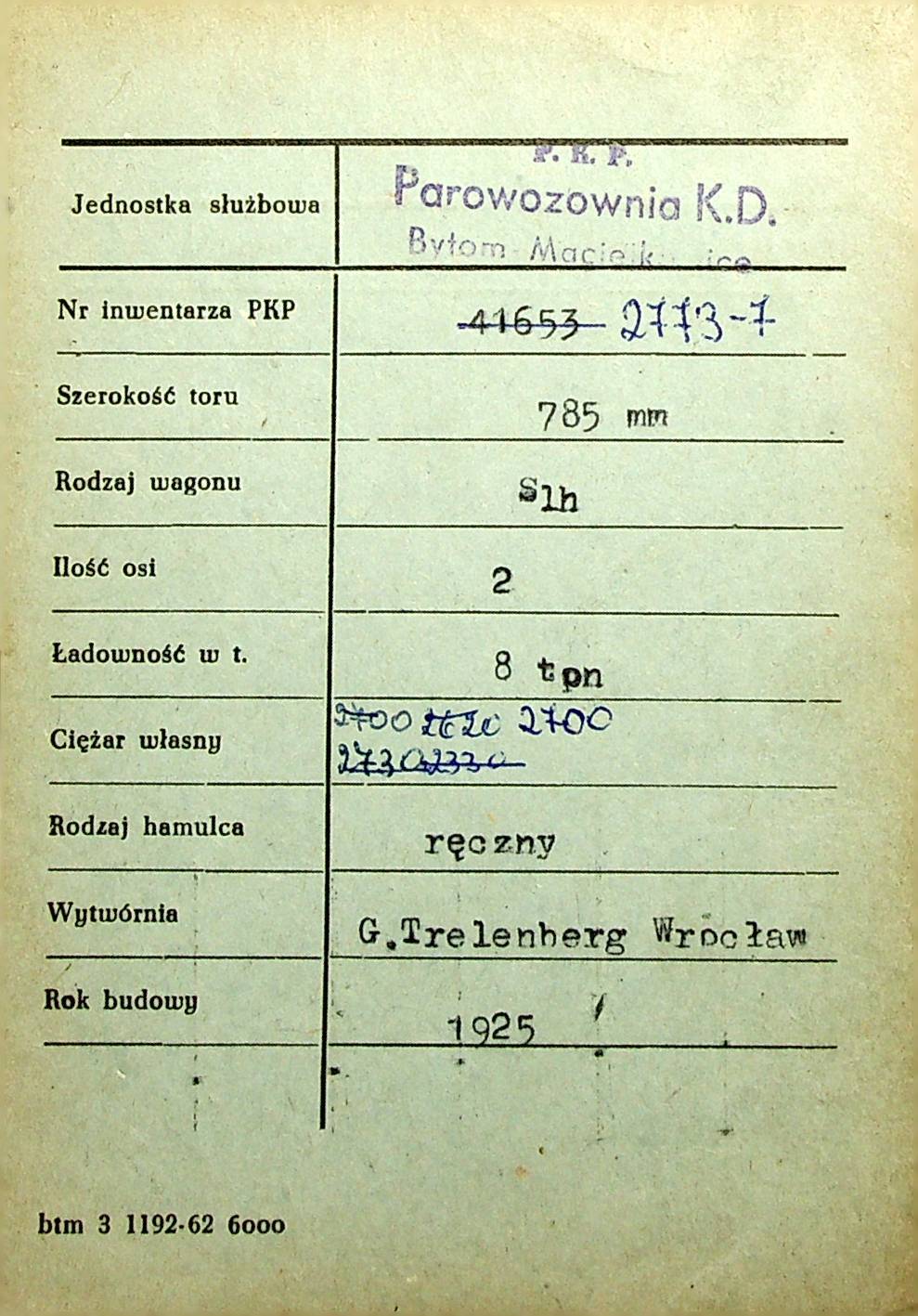 Karta wagonu Górnośląskich Kolei Wąskotorowych |