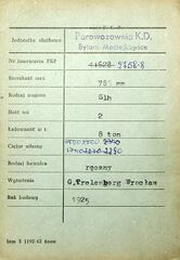 Karta wagonu Górnośląskich Kolei Wąskotorowych |