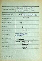 Karta wagonu Górnośląskich Kolei Wąskotorowych |