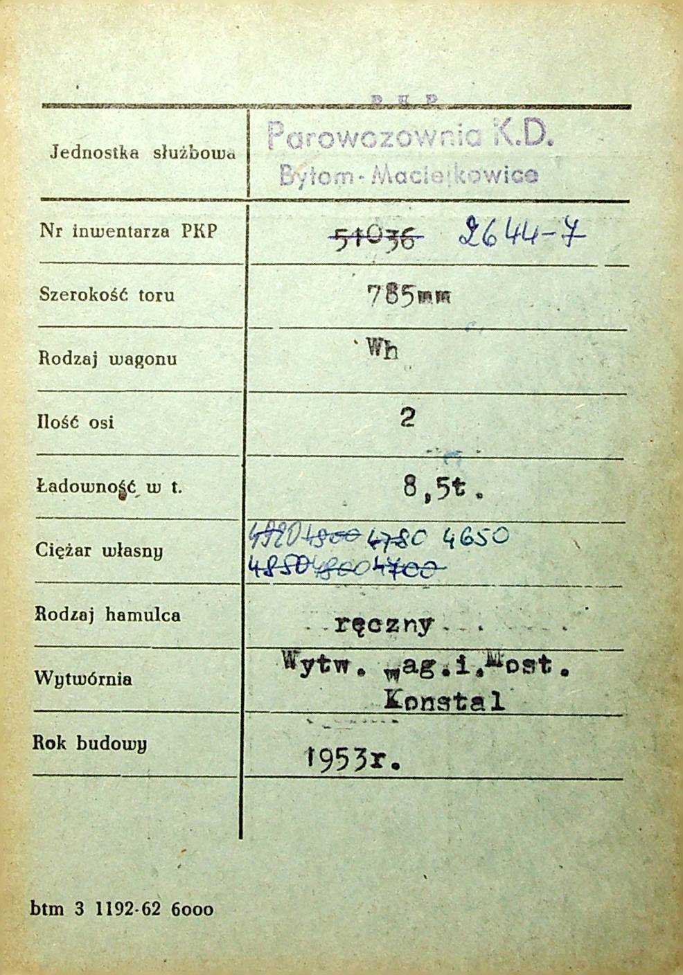 Karta wagonu Górnośląskich Kolei Wąskotorowych |