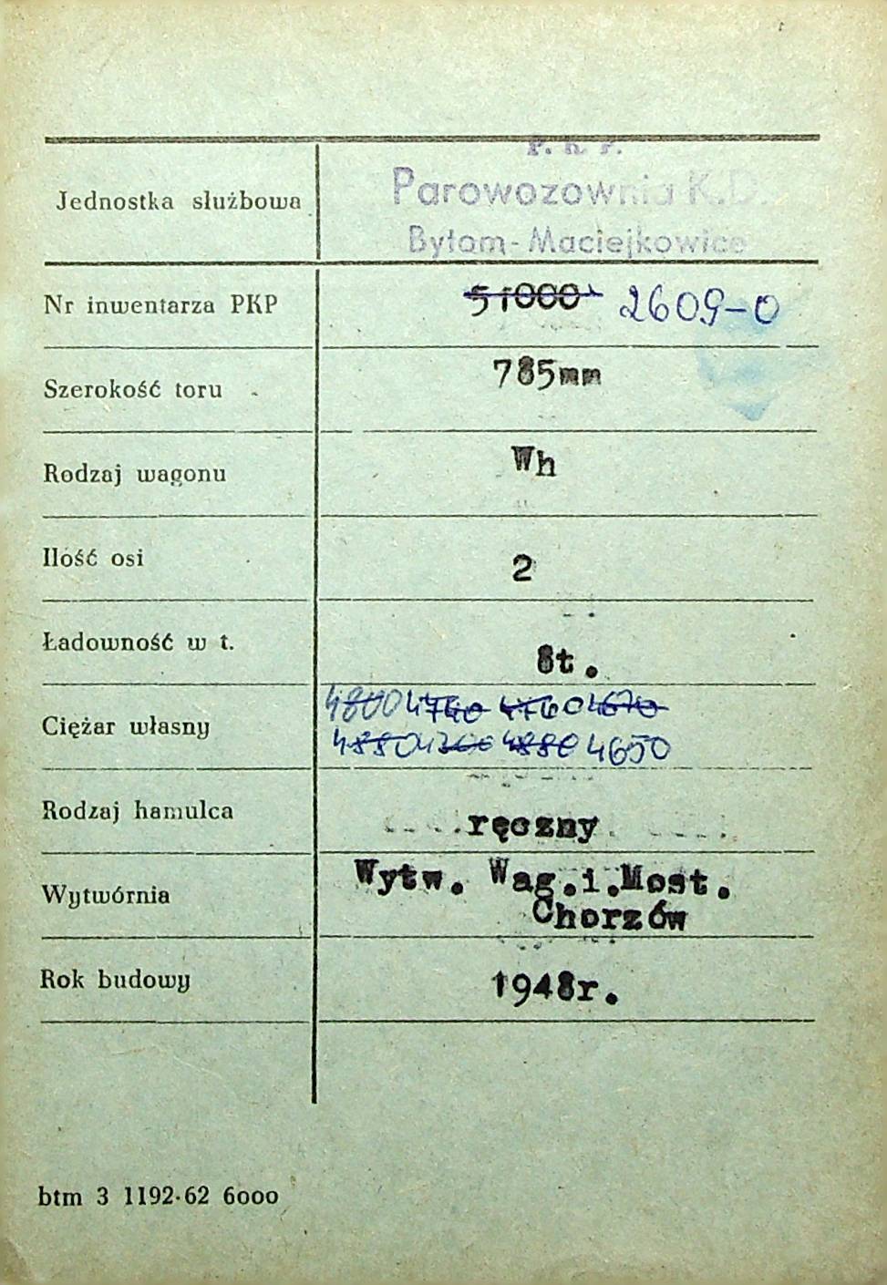 Karta wagonu Górnośląskich Kolei Wąskotorowych |