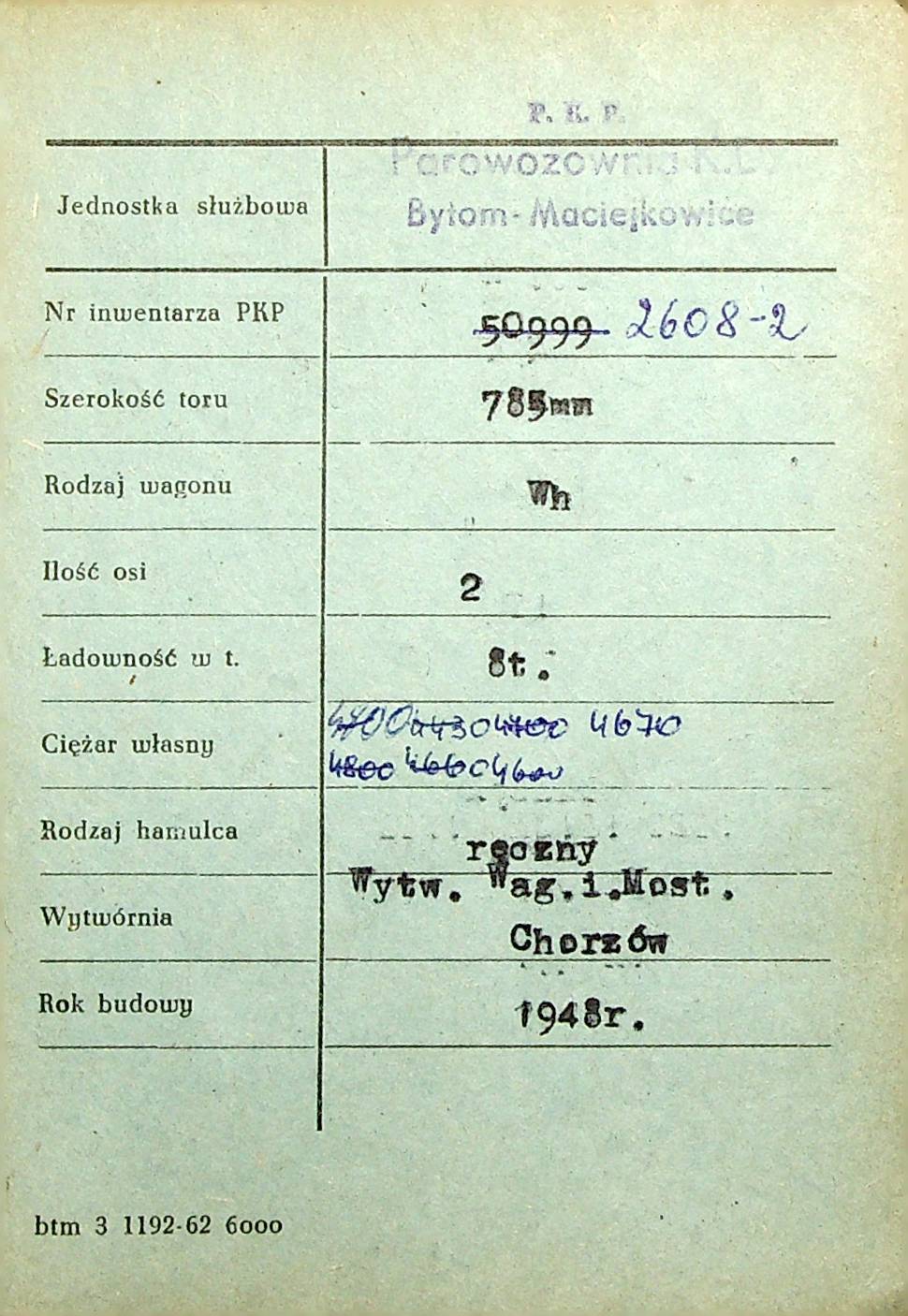 Karta wagonu Górnośląskich Kolei Wąskotorowych |