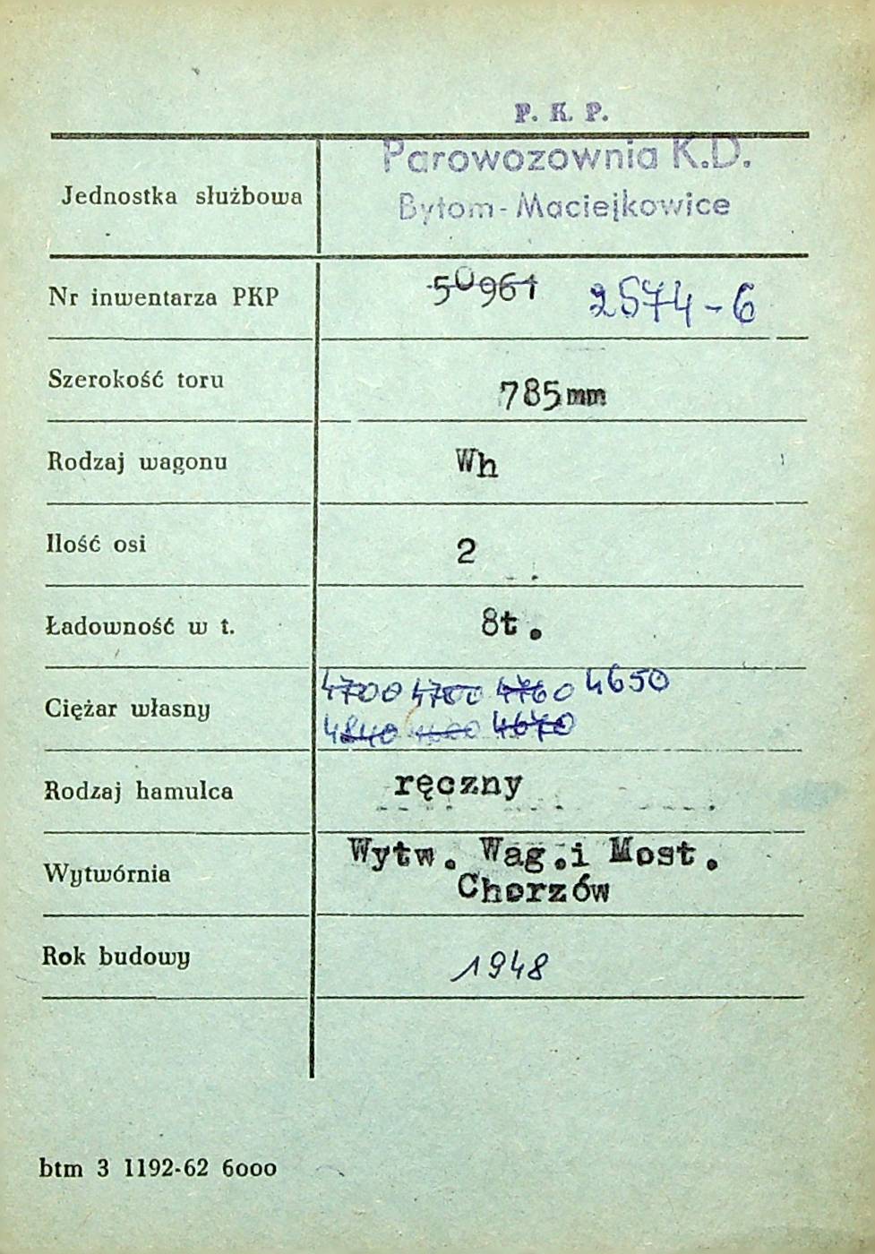 Karta wagonu Górnośląskich Kolei Wąskotorowych |