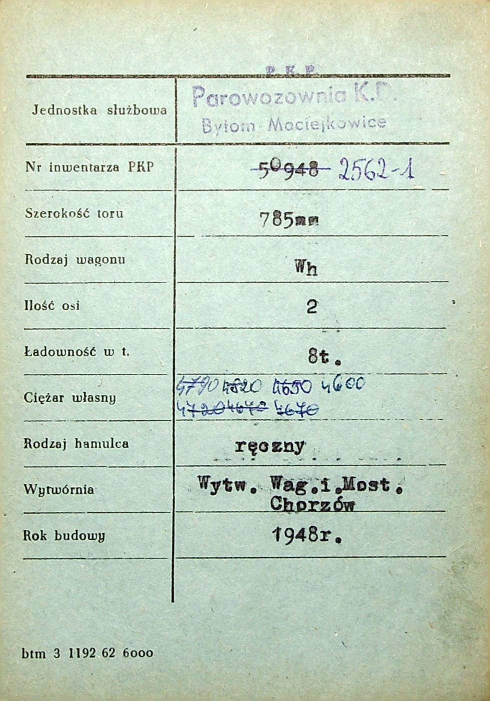 Karta wagonu Górnośląskich Kolei Wąskotorowych |