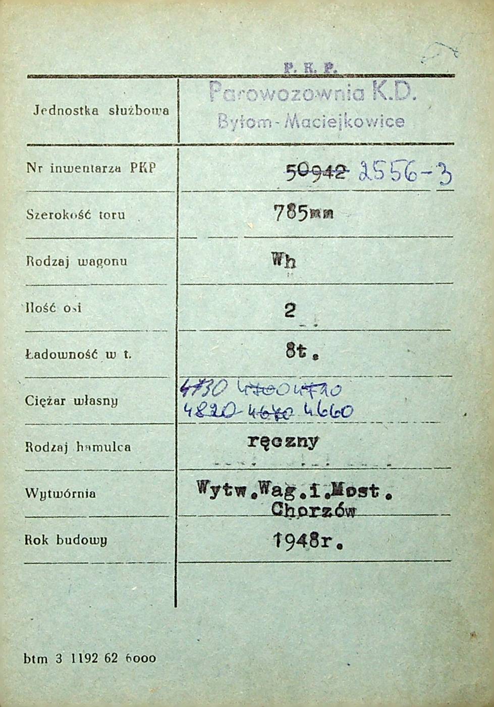 Karta wagonu Górnośląskich Kolei Wąskotorowych |