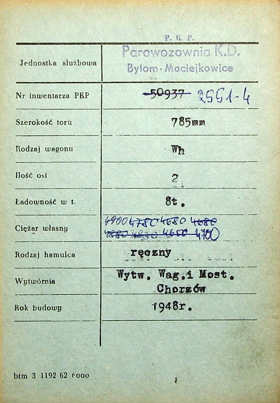 Karta wagonu Górnośląskich Kolei Wąskotorowych |