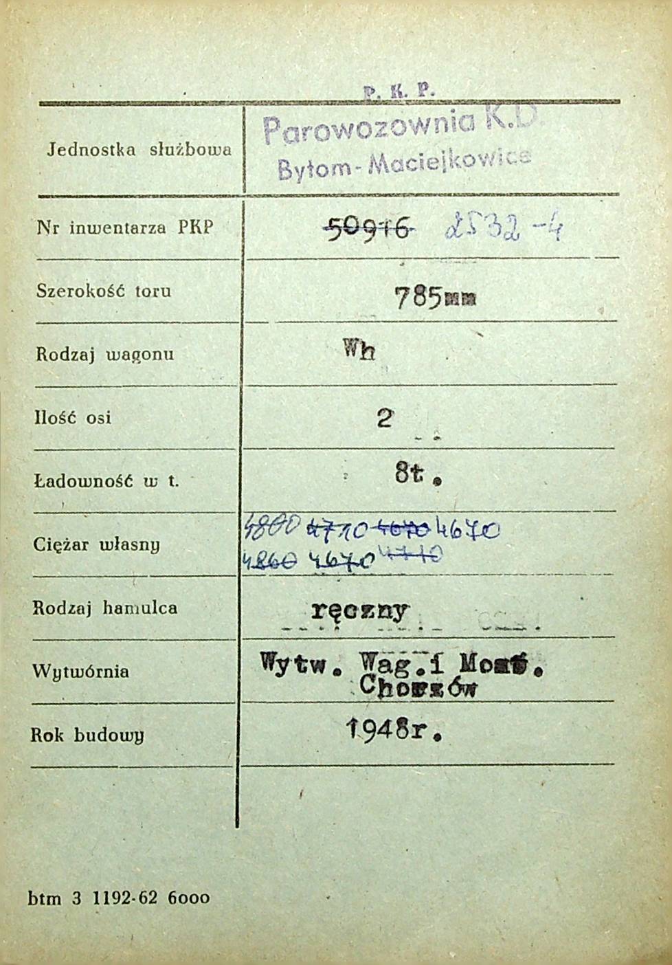 Karta wagonu Górnośląskich Kolei Wąskotorowych |
