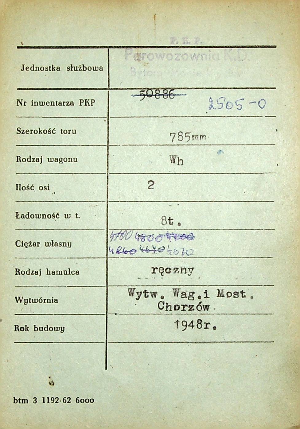 Karta wagonu Górnośląskich Kolei Wąskotorowych |
