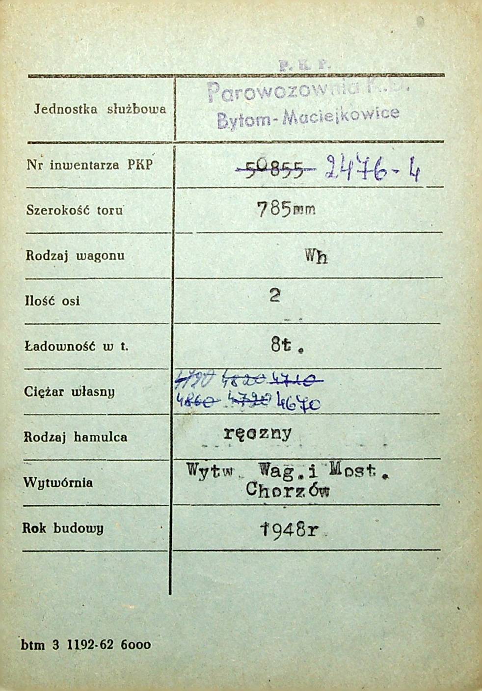 Karta wagonu Górnośląskich Kolei Wąskotorowych |