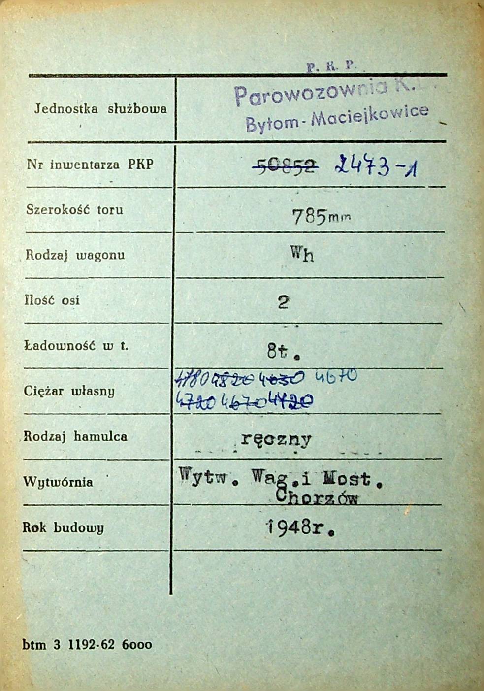 Karta wagonu Górnośląskich Kolei Wąskotorowych |