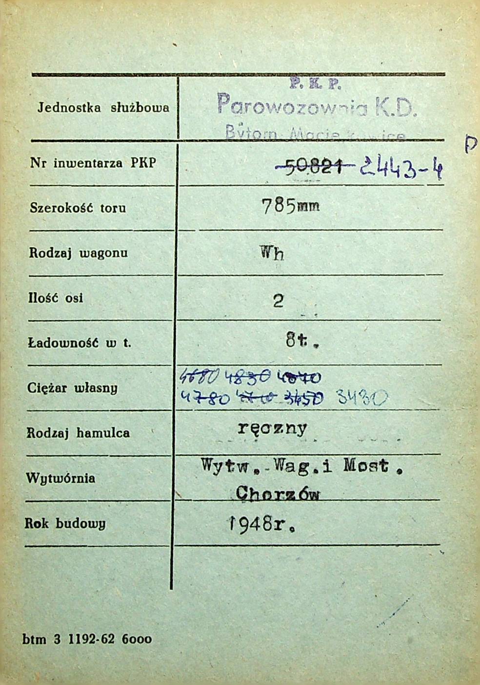 Karta wagonu Górnośląskich Kolei Wąskotorowych |