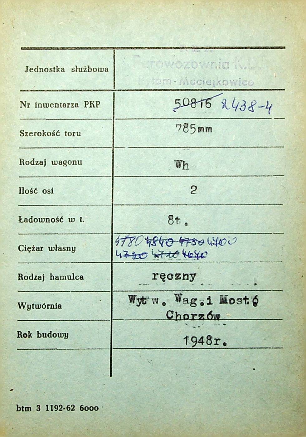 Karta wagonu Górnośląskich Kolei Wąskotorowych |
