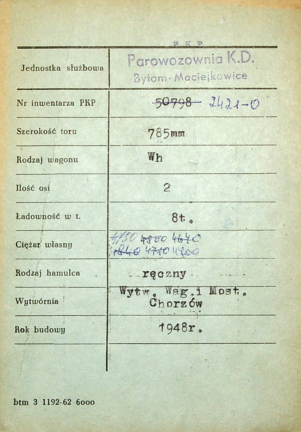 Karta wagonu Górnośląskich Kolei Wąskotorowych |