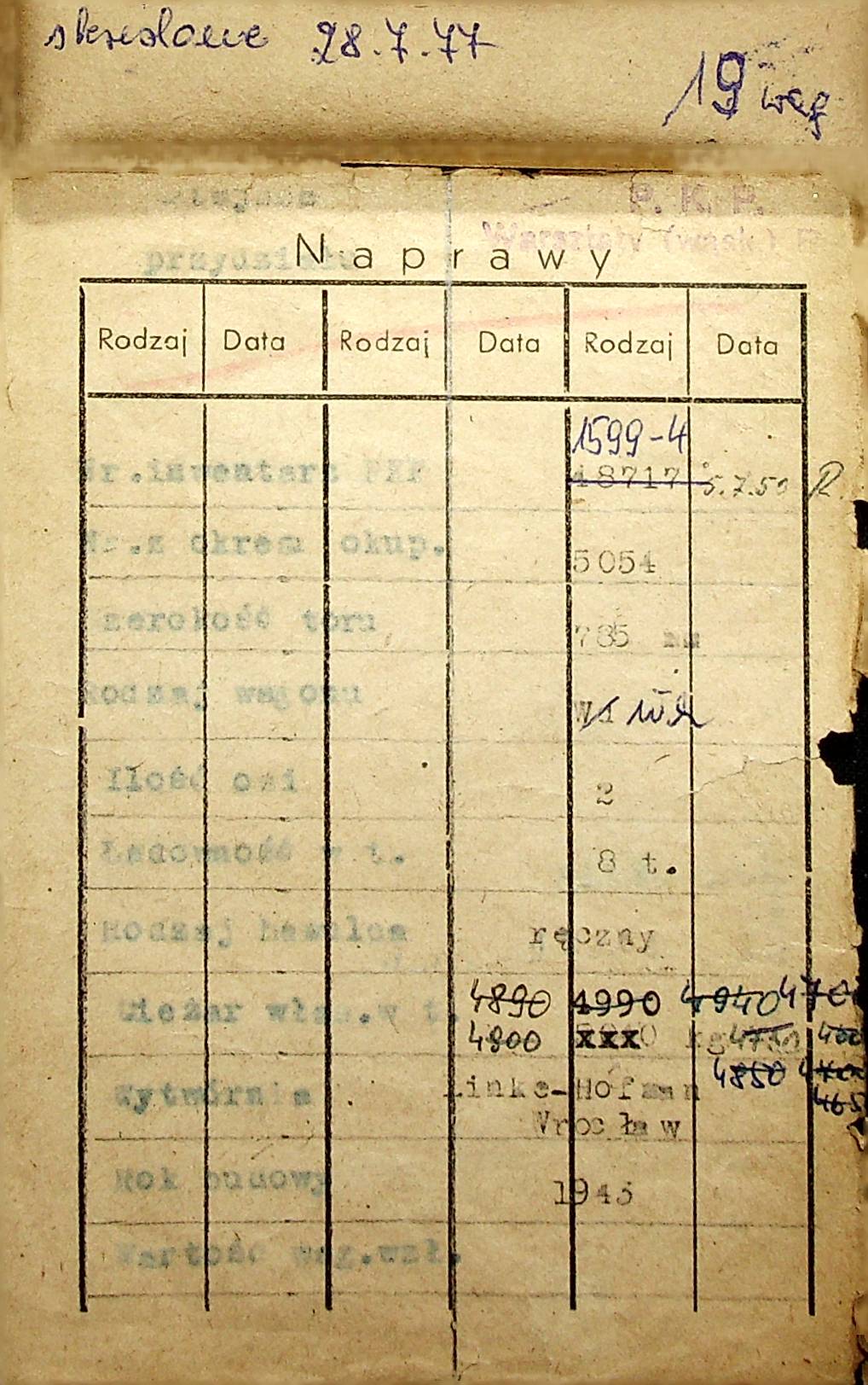 Karta wagonu Górnośląskich Kolei Wąskotorowych |