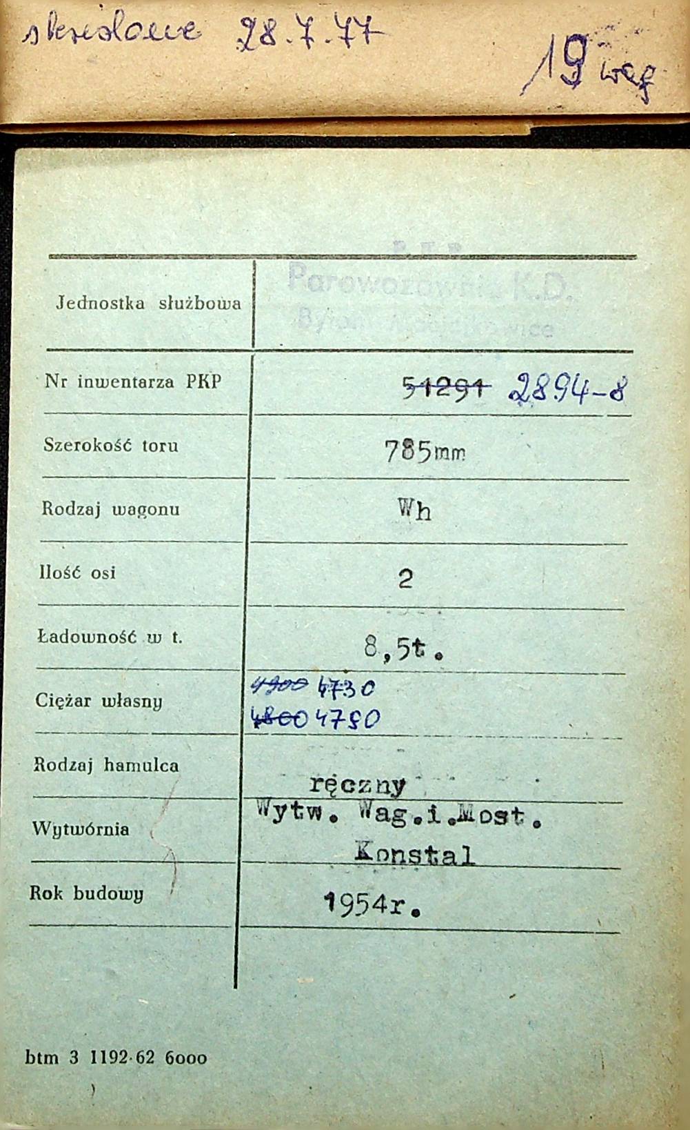 Karta wagonu Górnośląskich Kolei Wąskotorowych |