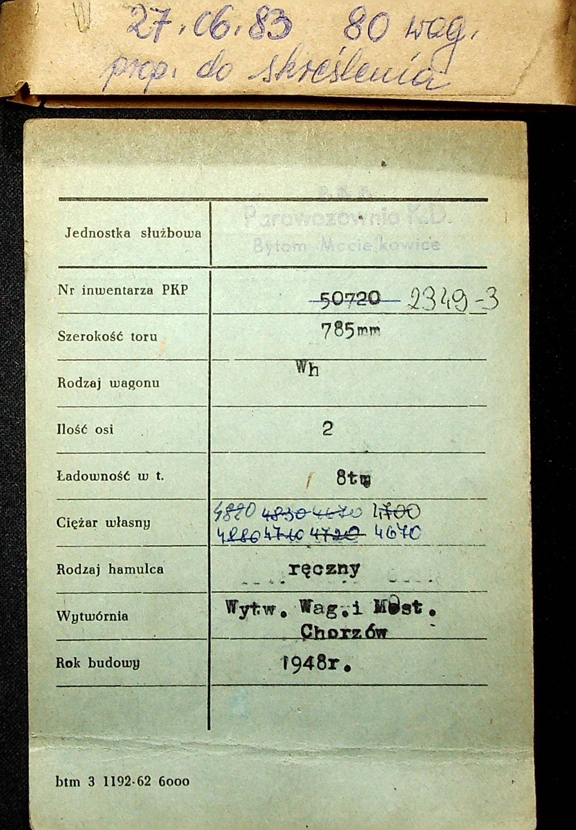 Karta wagonu Górnośląskich Kolei Wąskotorowych |