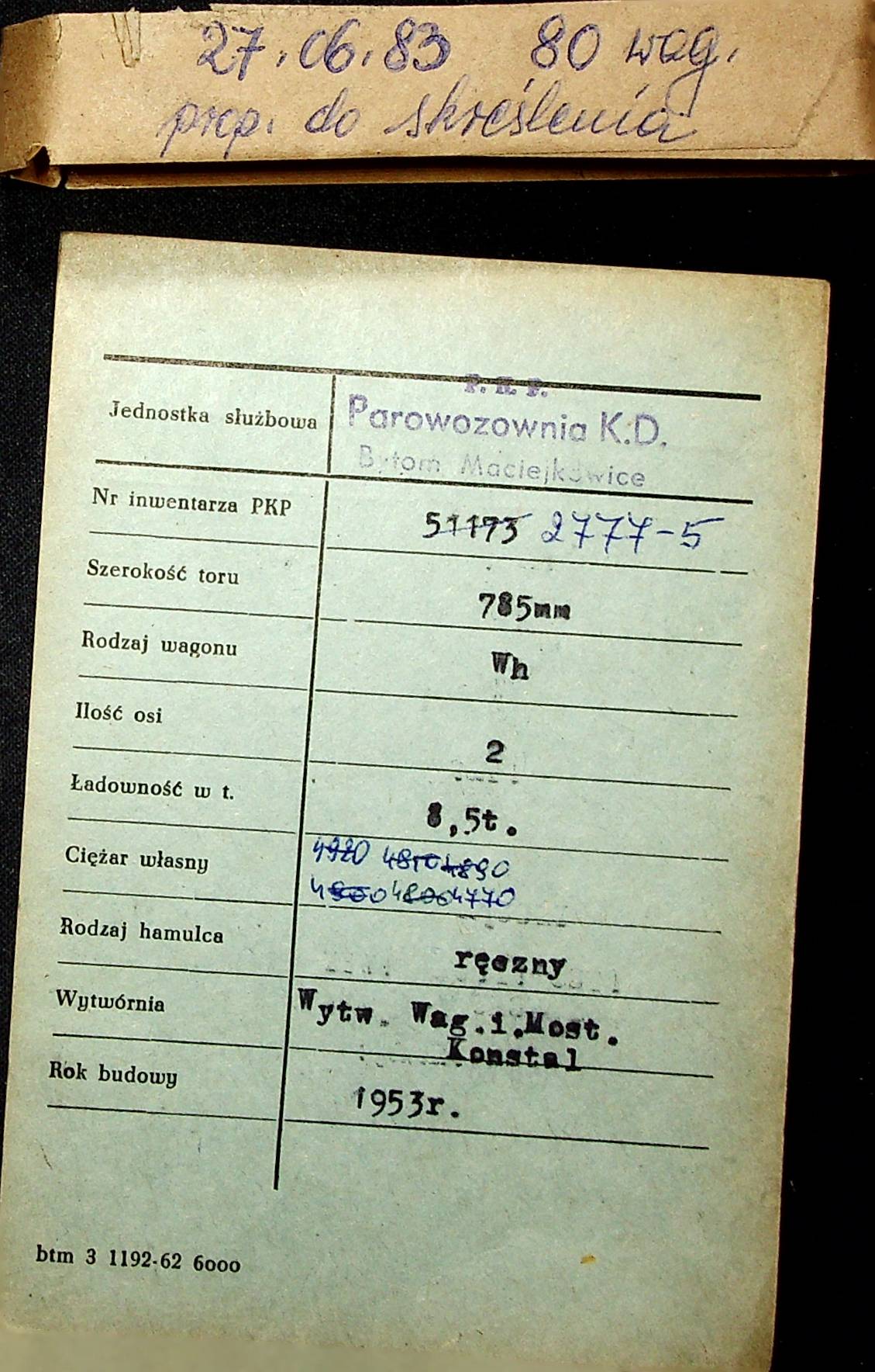 Karta wagonu Górnośląskich Kolei Wąskotorowych |