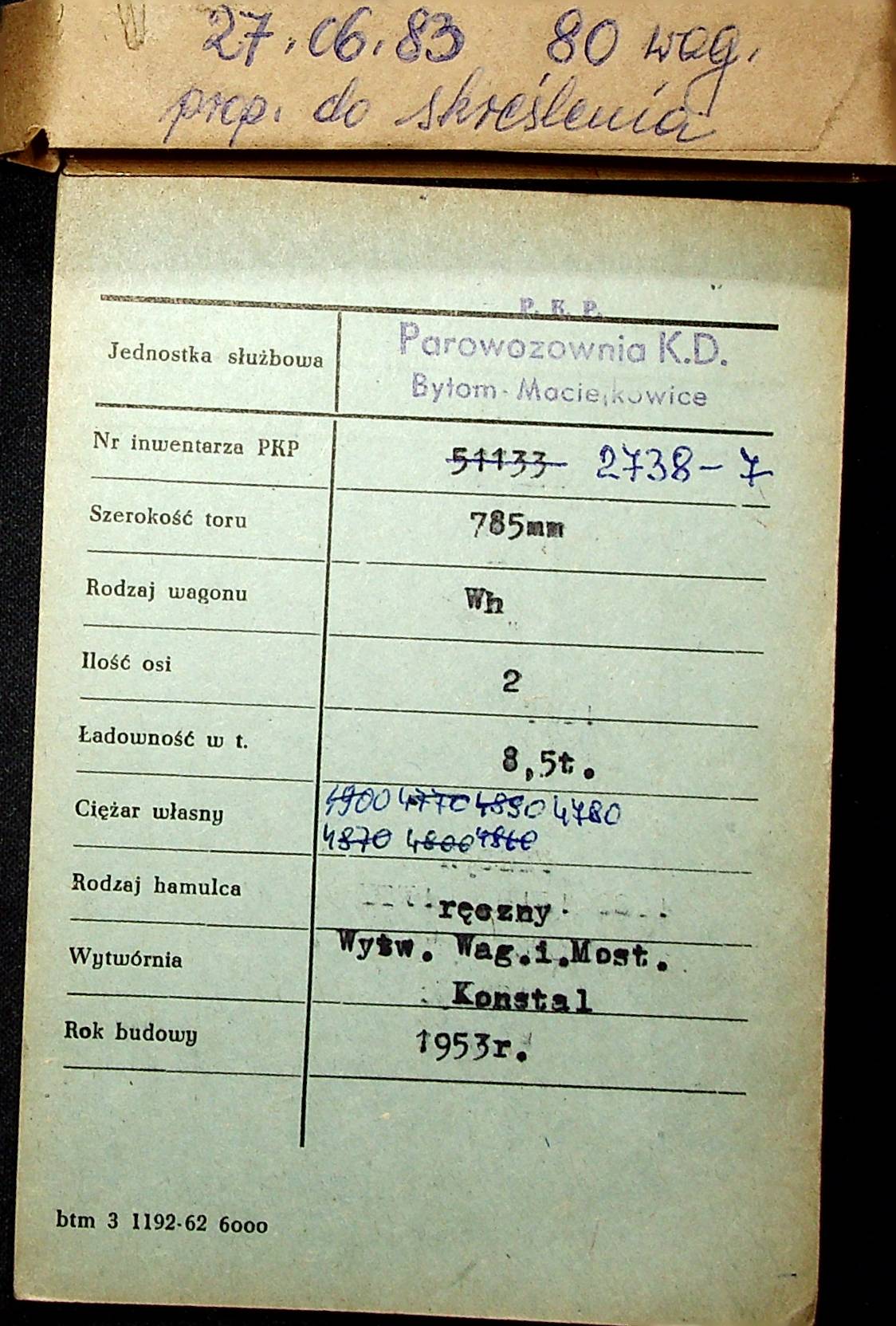 Karta wagonu Górnośląskich Kolei Wąskotorowych |