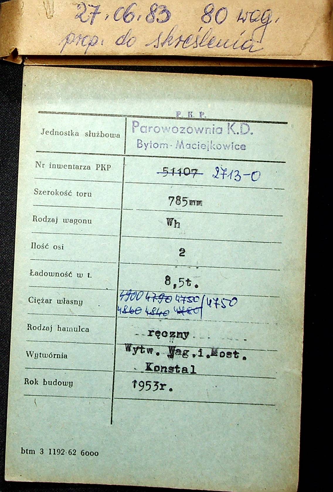 Karta wagonu Górnośląskich Kolei Wąskotorowych |