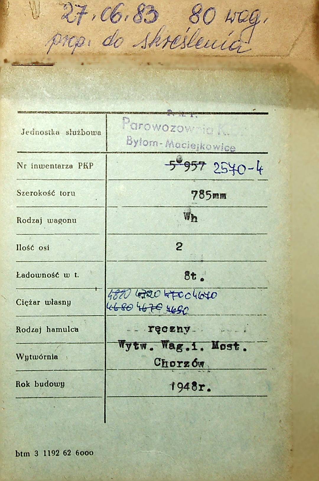 Karta wagonu Górnośląskich Kolei Wąskotorowych |