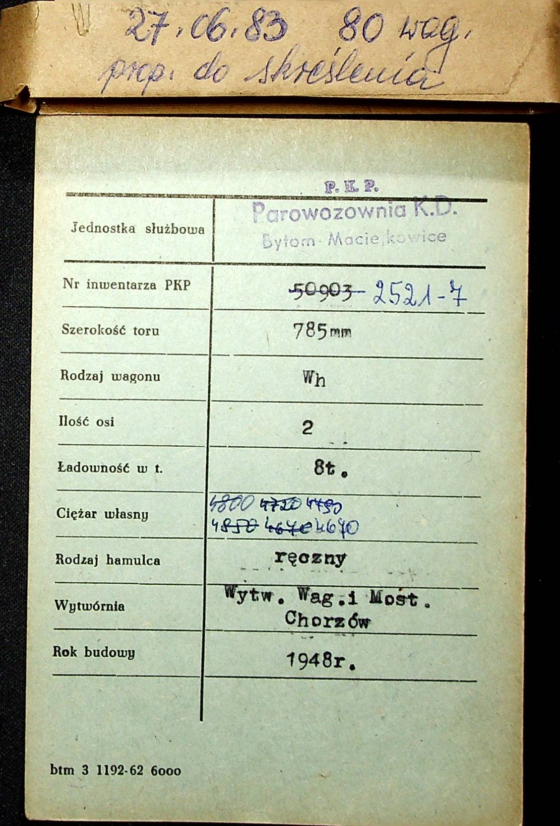 Karta wagonu Górnośląskich Kolei Wąskotorowych |