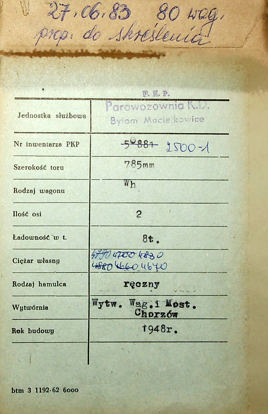 Karta wagonu Górnośląskich Kolei Wąskotorowych |