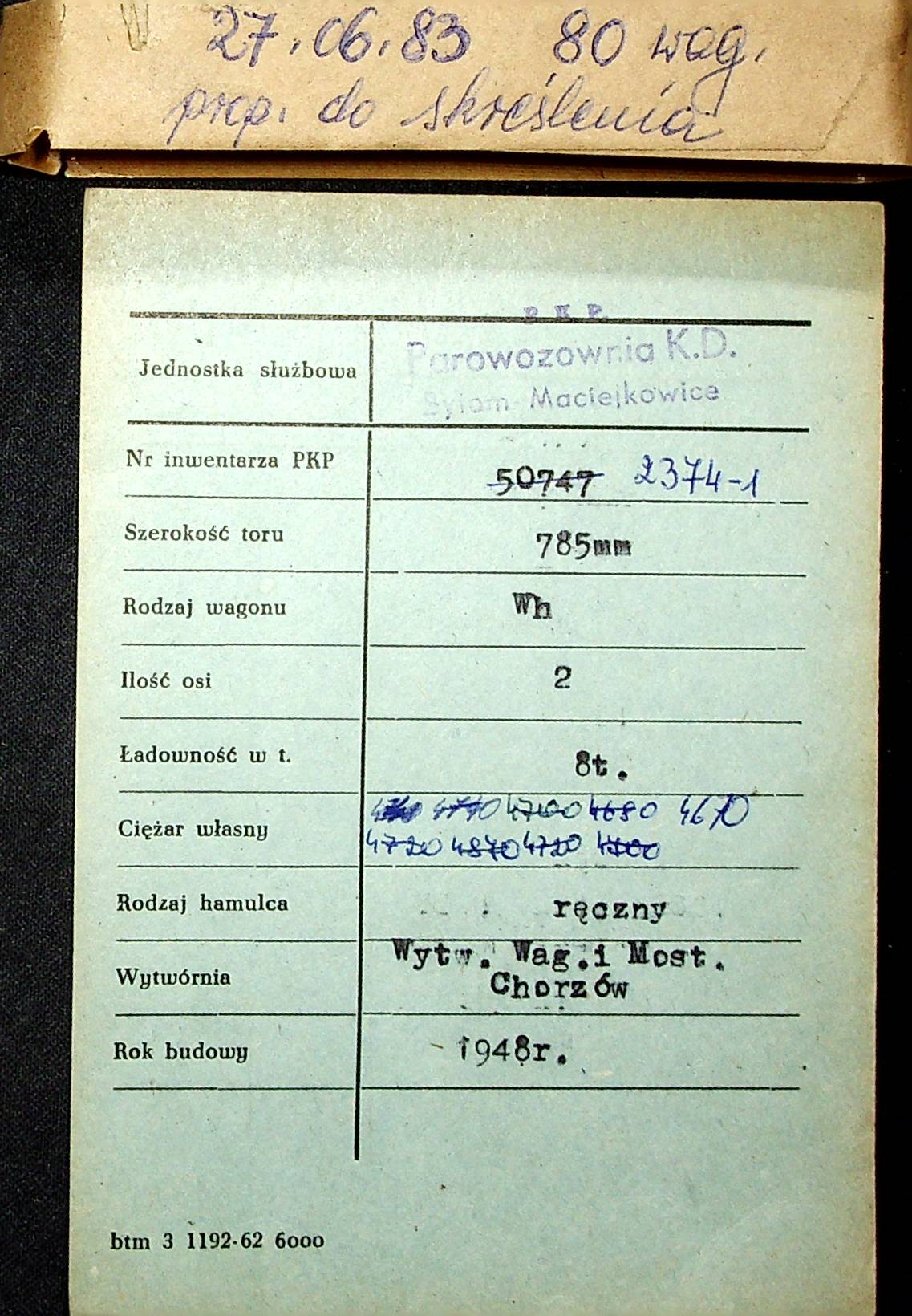 Karta wagonu Górnośląskich Kolei Wąskotorowych |