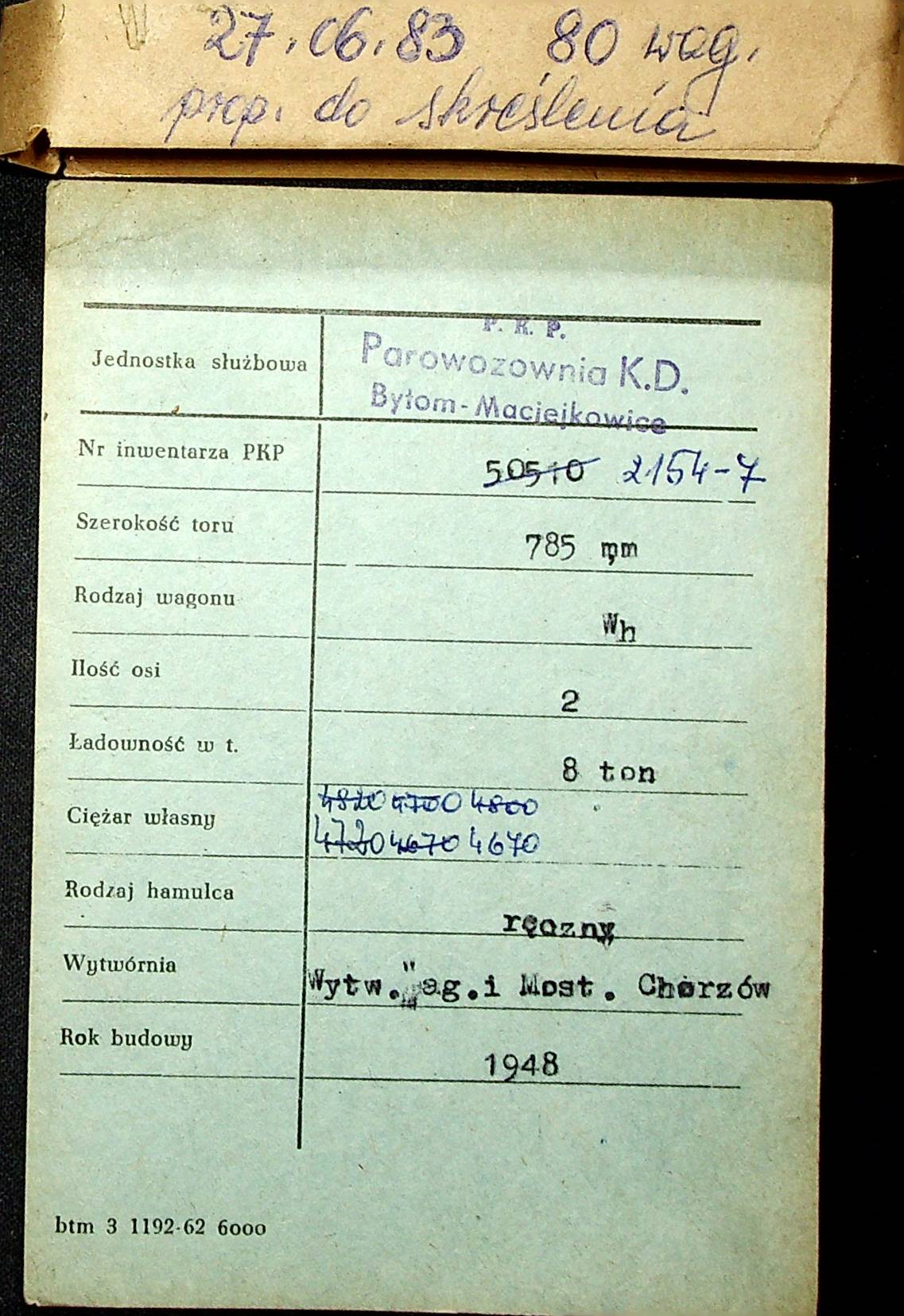 Karta wagonu Górnośląskich Kolei Wąskotorowych |