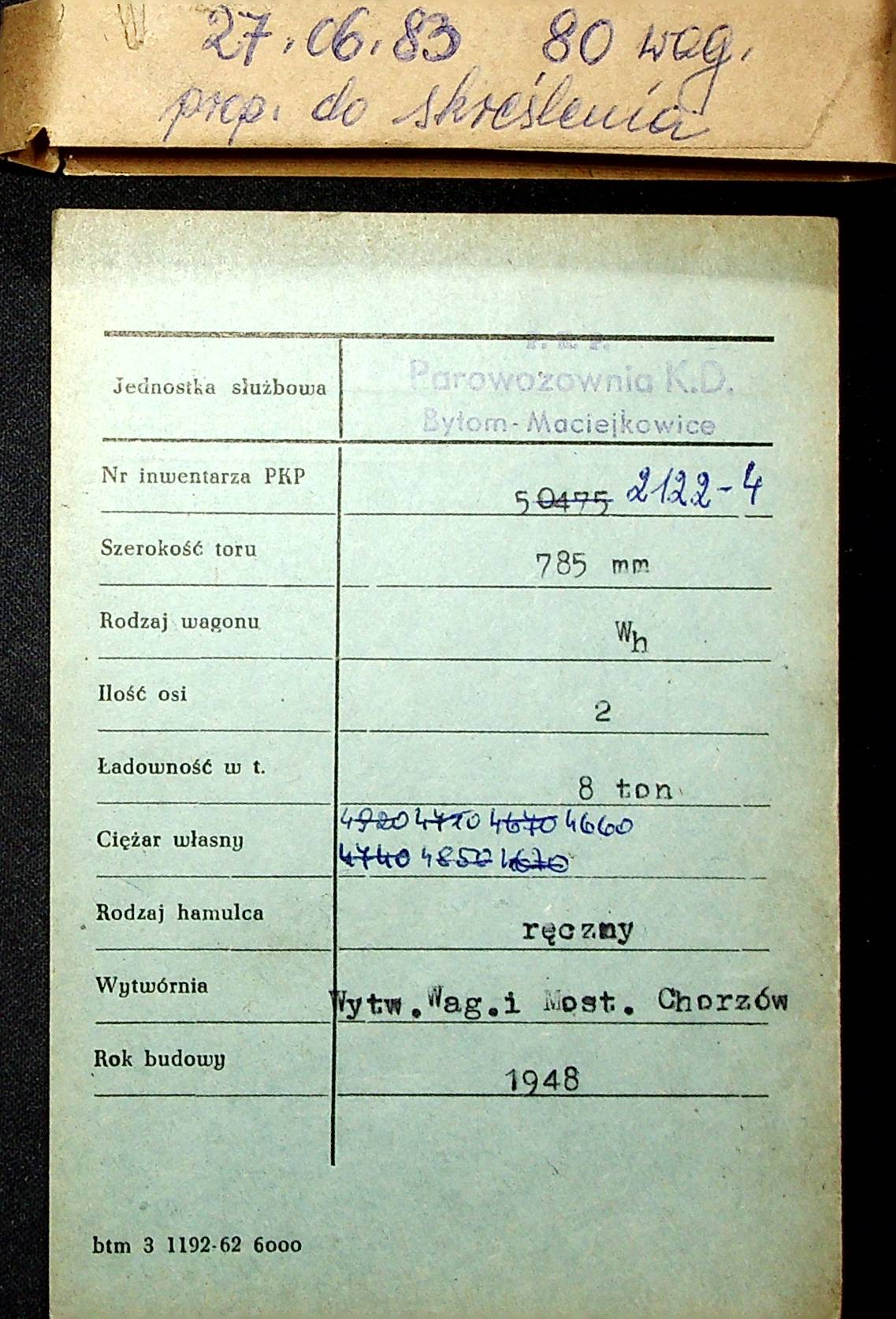 Karta wagonu Górnośląskich Kolei Wąskotorowych |