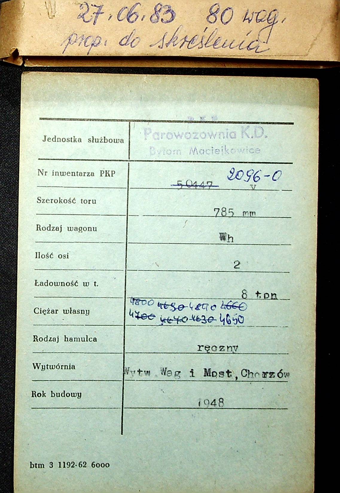 Karta wagonu Górnośląskich Kolei Wąskotorowych |