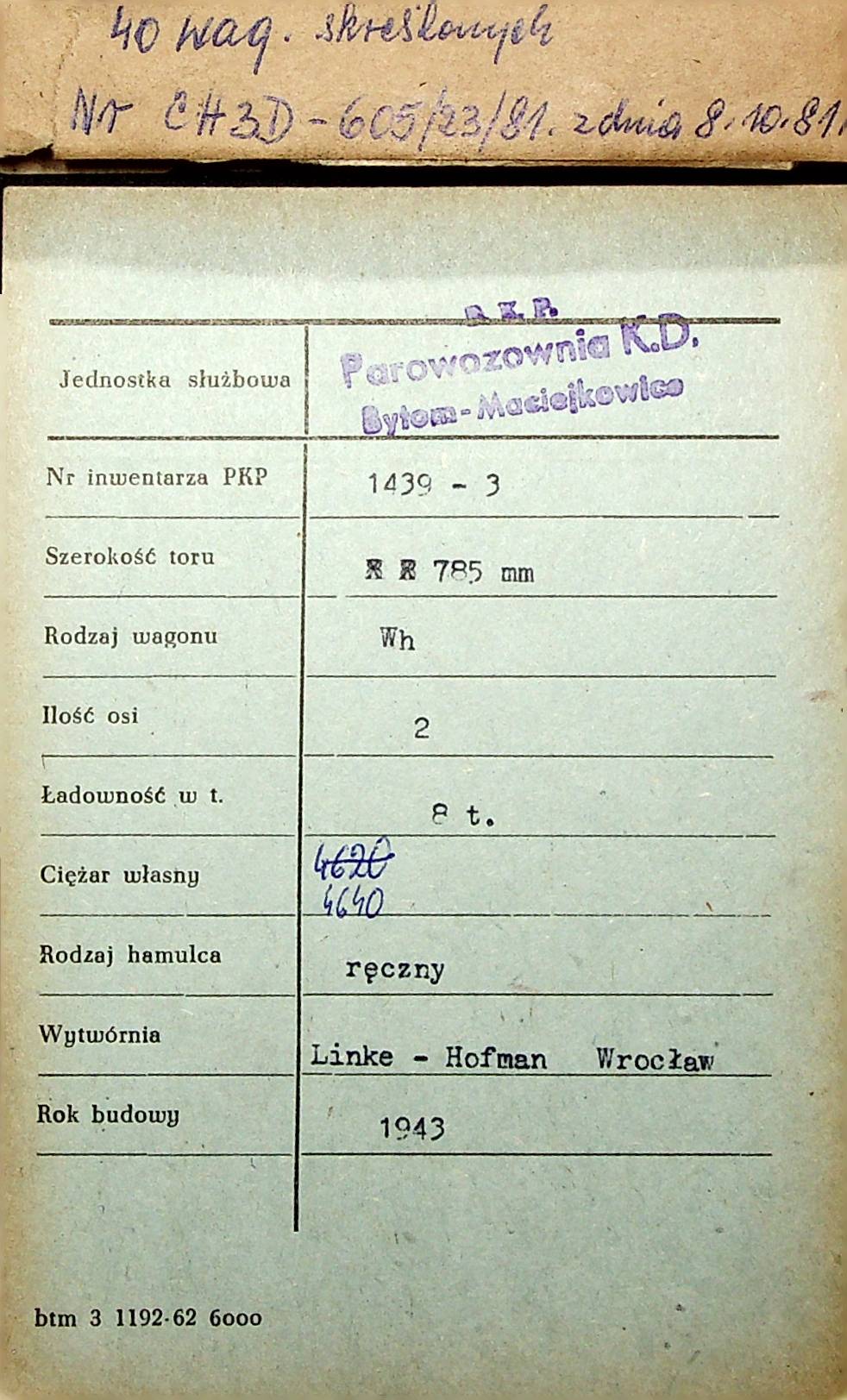 Karta wagonu Górnośląskich Kolei Wąskotorowych |