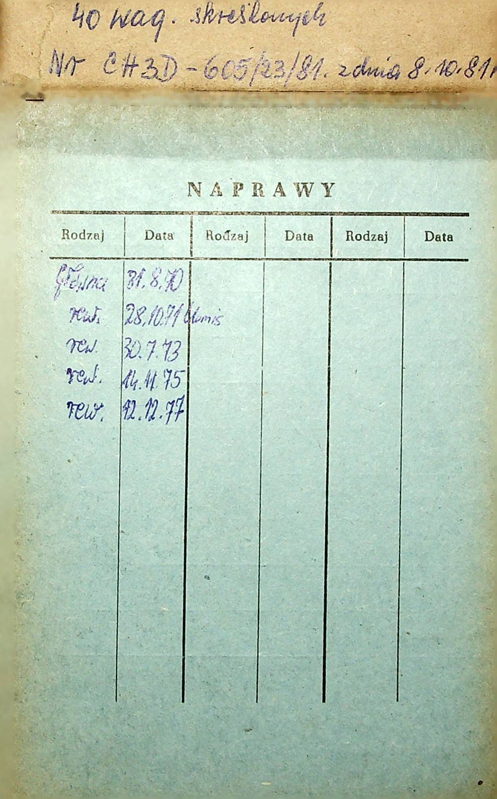 Karta wagonu Górnośląskich Kolei Wąskotorowych |