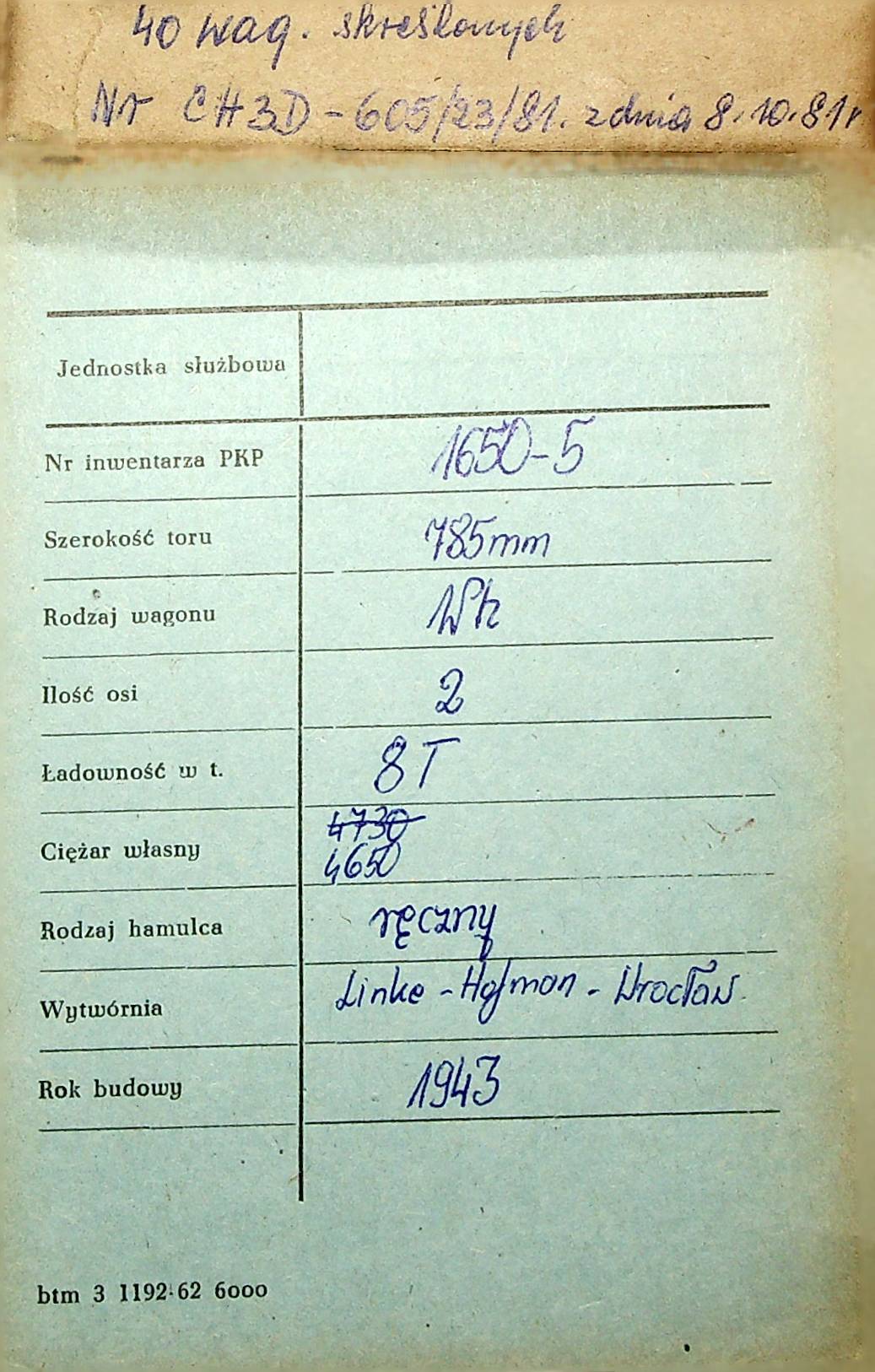 Karta wagonu Górnośląskich Kolei Wąskotorowych |