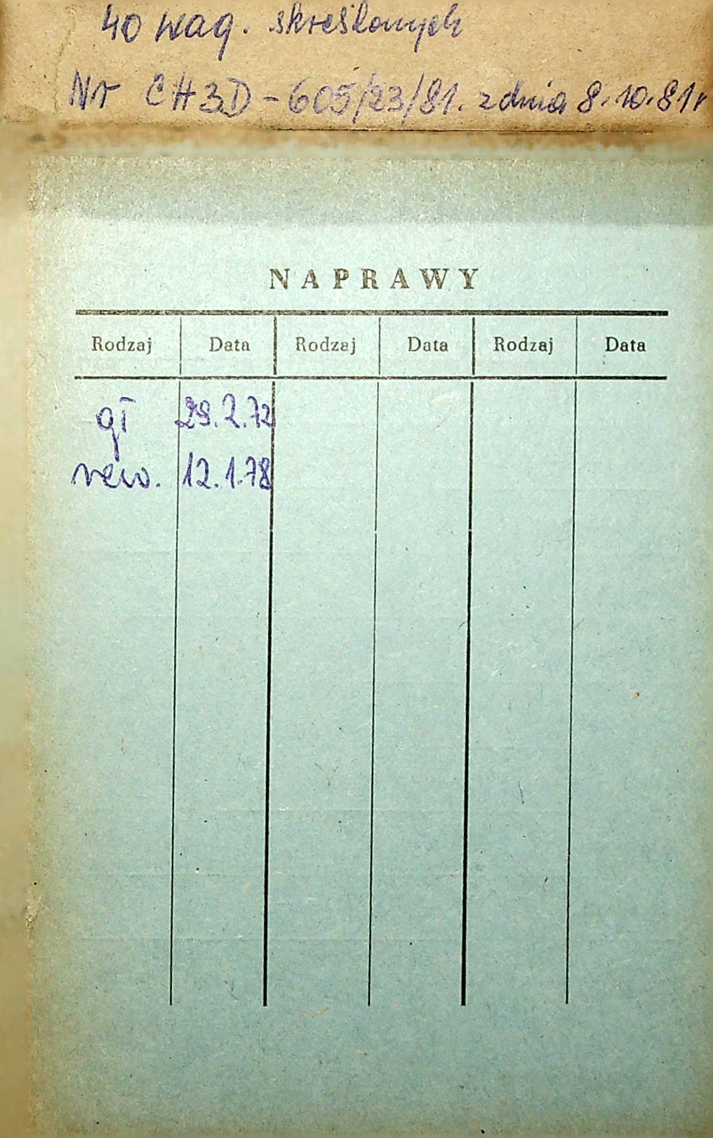 Karta wagonu Górnośląskich Kolei Wąskotorowych |