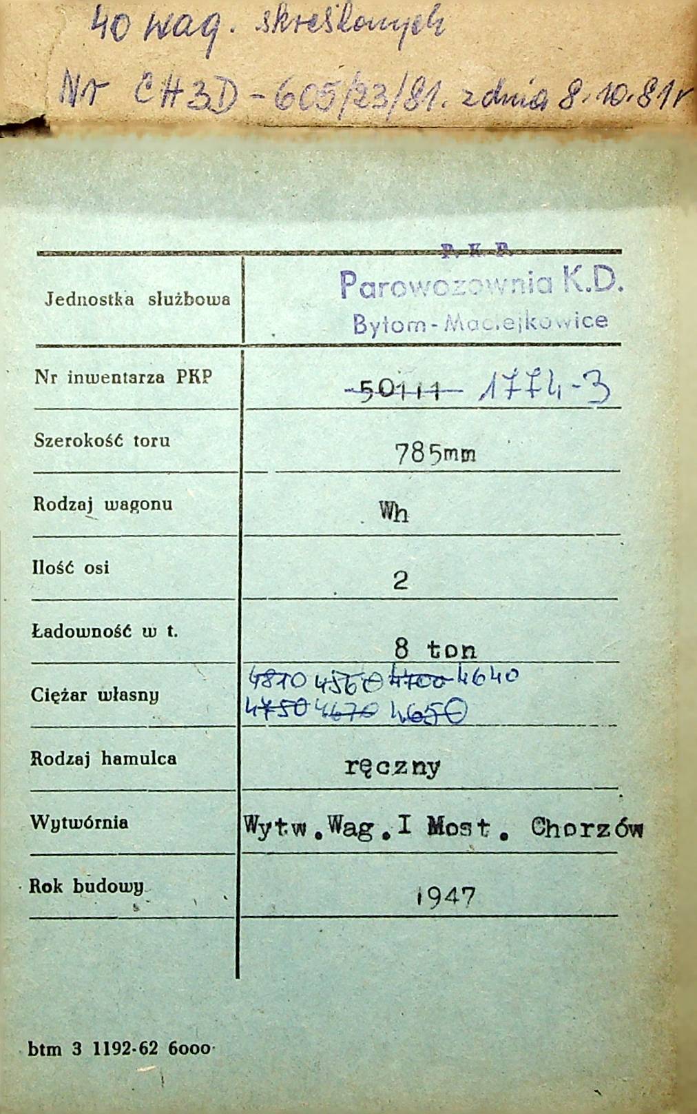 Karta wagonu Górnośląskich Kolei Wąskotorowych |