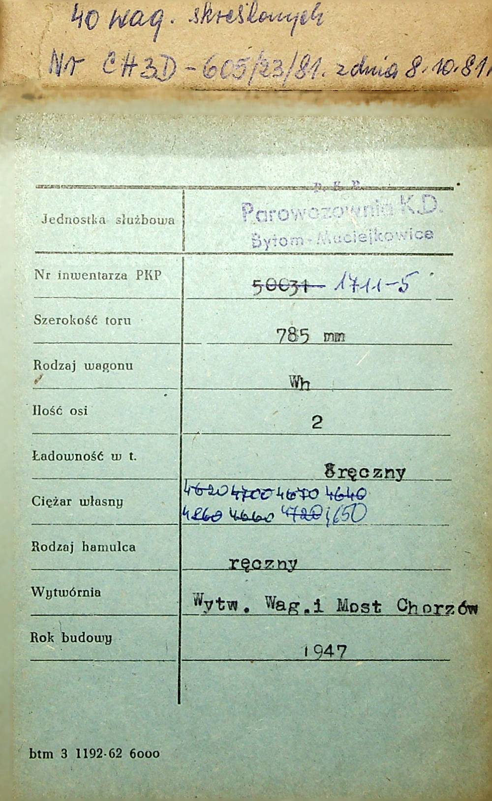 Karta wagonu Górnośląskich Kolei Wąskotorowych |